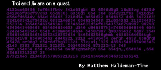 Jix smiled, remembering. It was safe to smile; he was a brief half-step behind Troi, trotting along just behind Troi’s shoulder, and his expression wouldn’t be seen. Things weren’t all that serious, anyway. Troi was just out to prove something because Jix had almost died again. Troi apparently had this thing about seeing Jix unconscious on the ground in a pool of blood. It didn’t do much good to explain about the whole self-healing thing; Troi had to go super badass for a few hours before getting over it.